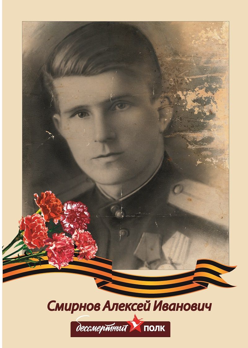 Смирнов Алексей Иванович, УВОВ. (1923-1985). Старший лейтенант. Был на передовой. Пехота. Служил на ленинградском фронте. Имеет боевые награды и ордена. Имел ранения и контузию. Встретил победу в Германии. Боевой путь: Прошел всю войну, за боевые заслуги имеет многочисленные награды. Служил на передовой, Ленинградский фронт. Дошел до Германии,где и встретил Победу.